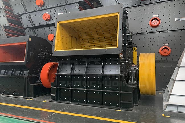 重錘破由機(jī)體、襯板、上機(jī)殼、錘頭、轉(zhuǎn)子軸、破碎腔、活動襯板等部件組成。其中活動襯板位于出料口處,通過調(diào)節(jié)活動襯板可以控制出料粒度的大小。