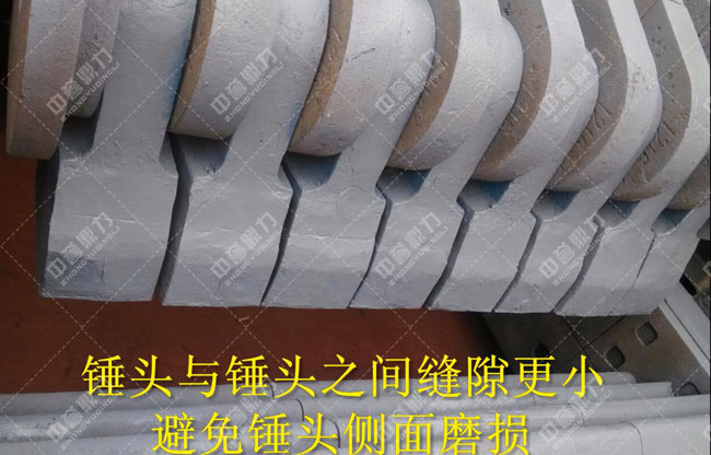 1、配件使用壽命長(zhǎng)——主襯板厚度增加,延長(zhǎng)使用壽命;錘頭與錘頭之間縫隙更小,避免錘頭側(cè)面磨損;錘盤上安裝護(hù)套;