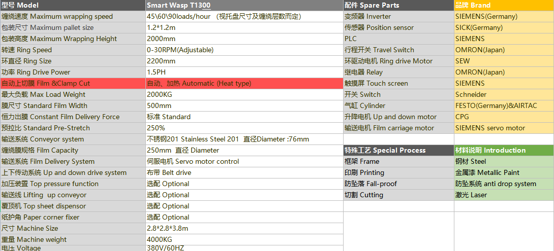 a.高速纏繞  小黃蜂X1300高速立式纏繞機(jī)包裝速度45托/小時(shí)起。45/60/90托/小時(shí)可選;