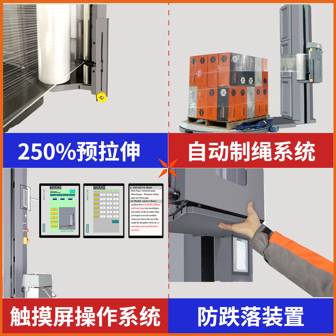 b.自動制繩系統(tǒng)  自動制繩技術(shù)確保貨物不會在運(yùn)輸途中滑出托盤;