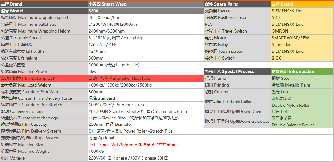 小黃蜂全自動在線薄膜纏繞機(jī)S300,是適應(yīng)流水線作業(yè)的包裝機(jī)械,非常適合現(xiàn)代化企業(yè)的自動化