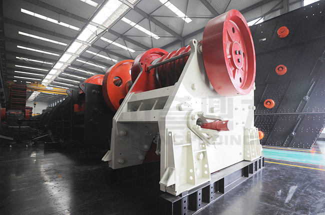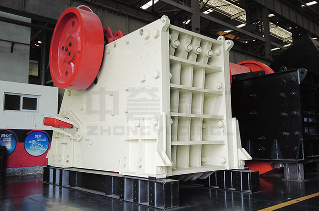 電動(dòng)機(jī)驅(qū)動(dòng)皮帶和皮帶輪,通過偏心軸使動(dòng)顎上下運(yùn)動(dòng),當(dāng)動(dòng)顎上升時(shí)肘板與動(dòng)顎間夾角變大,從而推動(dòng)動(dòng)顎板向固定顎板接近,與其同時(shí)物料被壓碎或劈碎,達(dá)到破碎的目的;當(dāng)動(dòng)顎下行時(shí),肘板與動(dòng)顎夾角變小,動(dòng)顎板在拉桿,彈簧的作用下,離開固定顎板,此時(shí)已破碎物料從破碎腔下口排出。