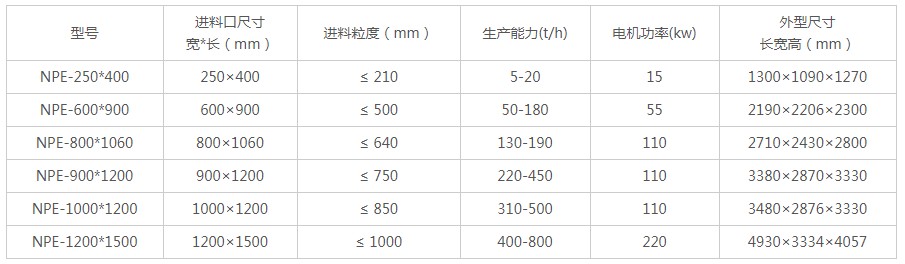 顎式破碎機(jī)型號技術(shù)規(guī)格