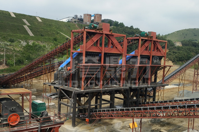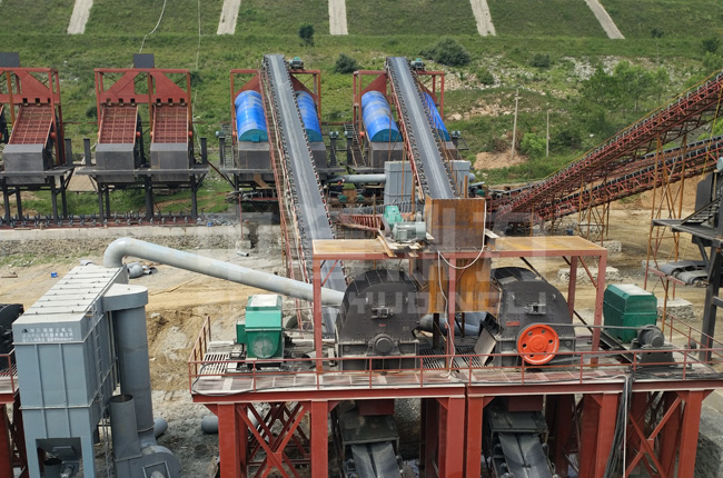 日產(chǎn)4萬噸的砂石生產(chǎn)線設(shè)備配置方案有兩種,一種方案是單臺主破+兩臺二破組成的一條生產(chǎn)線,另一種是多臺主破+多臺二破組成的兩條生產(chǎn)線同時運行。