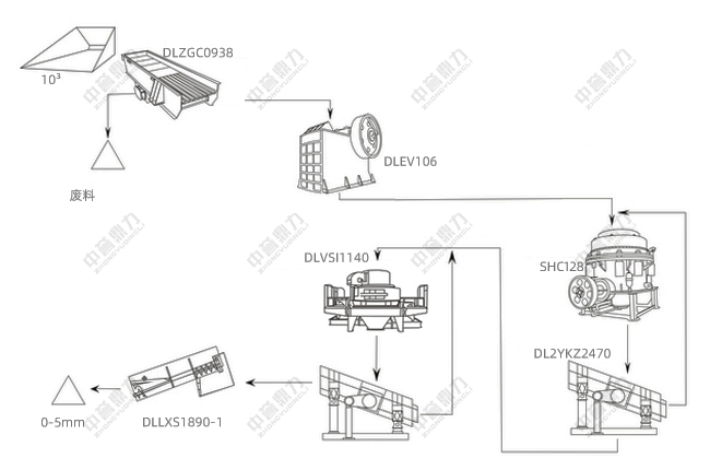 一套完整的時(shí)產(chǎn)150噸機(jī)制砂生產(chǎn)線不僅包括制砂環(huán)節(jié),還包括大塊物料的粗、細(xì)碎作業(yè),DLZSJ1238雙轉(zhuǎn)子制砂機(jī)和DLVSI1140立軸沖擊式制砂機(jī)都可用于機(jī)制砂生產(chǎn)線,根據(jù)物料硬度大小合理設(shè)計(jì)加工工藝,生產(chǎn)高質(zhì)量機(jī)制砂。