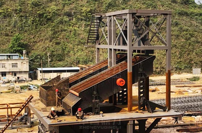 廣西龍文采石場振動篩設(shè)備安裝現(xiàn)場實(shí)拍