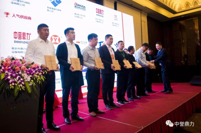 會(huì)議期間,中水泥網(wǎng)舉行了“2017中水泥行業(yè)百?gòu)?qiáng)供應(yīng)商”、“中水泥熟料產(chǎn)能百?gòu)?qiáng)”等獎(jiǎng)項(xiàng)頒獎(jiǎng)典禮,中譽(yù)鼎力獲評(píng)“第七屆中水泥行業(yè)百?gòu)?qiáng)供應(yīng)商”、“2017年度水泥行業(yè)服務(wù)供應(yīng)商”和“2017年度水泥行業(yè)人氣供應(yīng)商 ”三項(xiàng)榮譽(yù)稱號(hào)。