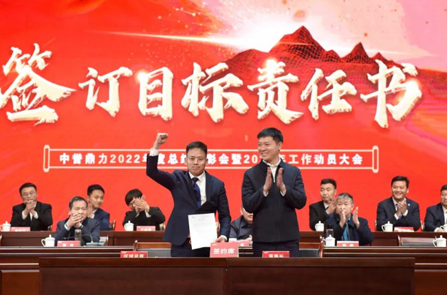 新的任命書下發(fā)以后,中譽鼎力各區(qū)域銷售負責(zé)人與張治民董事長一起簽訂銷售目標(biāo)責(zé)任書,為2023年銷售服務(wù)工作的開展表決心、振士氣、強信心。