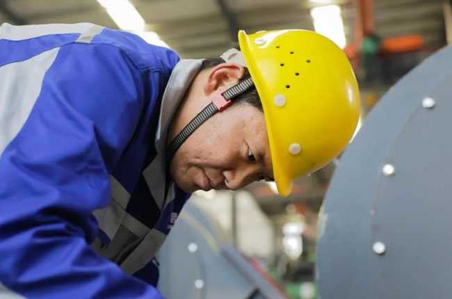 第三事業(yè)部組對班組長楊方誼便是一名組對技藝高超者。他不僅具有扎實的圖紙識別、金屬材料分析等理論知識,熟練掌握氣割、鉚焊等實踐操作技能,更對組對工件的尺寸大小、對接縫平整度等處理細節(jié)有著頗為嚴格的和要求!霸劢M對這一步要是沒做好,不僅耽誤下一道生產(chǎn)工序,還會影響設(shè)備質(zhì)量。所以要保持高度的質(zhì)量意識,嚴格要求自己!”