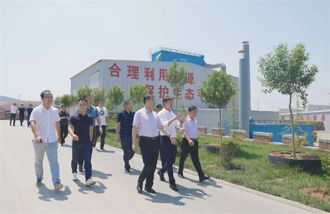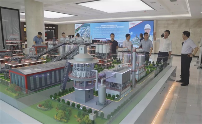 隨后,考察團(tuán)來(lái)到中譽(yù)鼎力智能裝備新廠區(qū),參觀了中譽(yù)鼎力五位一體循環(huán)建材產(chǎn)業(yè)園項(xiàng)目沙盤(pán),并在接待室進(jìn)行座談。