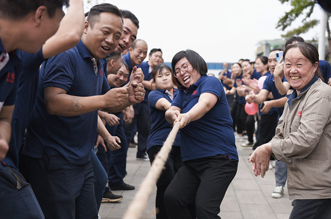 在張志宇常務(wù)副總經(jīng)理的發(fā)號施令下,拔河大對抗激烈上演。值得一提的是,以營銷為主組成的女子拔河團(tuán)隊在比賽中不遑多讓,體現(xiàn)了巾幗不讓須眉的氣勢。