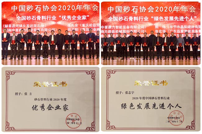 為表揚,樹立,引和推動行業(yè)向更高層次發(fā)展,此次年會還對2020年度砂石行業(yè)單位及個人進(jìn)行了表彰。