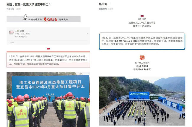 3月底,湖北省宜昌市2021年3月重大項(xiàng)目集中開(kāi)工活動(dòng)在宜昌市長(zhǎng)陽(yáng)土家族自治縣舉行?偼顿Y48.54億元的19個(gè)項(xiàng)目集中開(kāi)工,其中包含中譽(yù)鼎力規(guī)劃設(shè)計(jì)并提供礦山設(shè)備的長(zhǎng)陽(yáng)砂石集并中心年產(chǎn)1000萬(wàn)噸砂石生產(chǎn)線擴(kuò)能項(xiàng)目。三峽日?qǐng)?bào)、宜昌發(fā)布、三峽廣電、環(huán)球破碎機(jī)網(wǎng)等多家媒體競(jìng)相宣傳。
