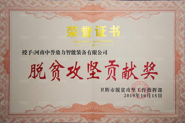 本次會議對為衛(wèi)輝市扶貧工作做出突出貢獻的十家企業(yè)進行了表彰,中譽鼎力智能裝備有限公司獲評“脫貧攻堅貢獻獎”,中譽鼎力智能裝備有限公司董事長張治民作為企業(yè)代表受邀出席頒獎儀式。