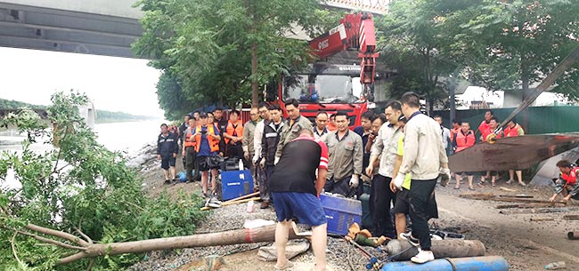 衛(wèi)輝開(kāi)槽排澇-中譽(yù)鼎力協(xié)助施工,奮戰(zhàn)一天一夜,將東孟河堤打通,成功泄洪