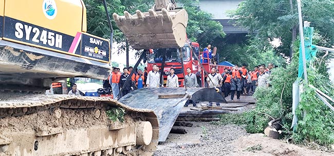 現(xiàn)場(chǎng)的施工人員說(shuō):在聶書(shū)記的帶下,我們奮戰(zhàn)了一天一夜,終于將東孟河堤打通,成功泄洪,排水量一天達(dá)到150萬(wàn)方,還會(huì)一鼓作氣再打通幾個(gè),爭(zhēng)取在短時(shí)間內(nèi)將城市積水排完!