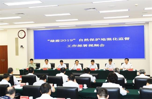 生態(tài)環(huán)境部副部長黃潤秋主持會議并對“綠盾2019”自然保護地強化監(jiān)督工作實施方案進行說明。