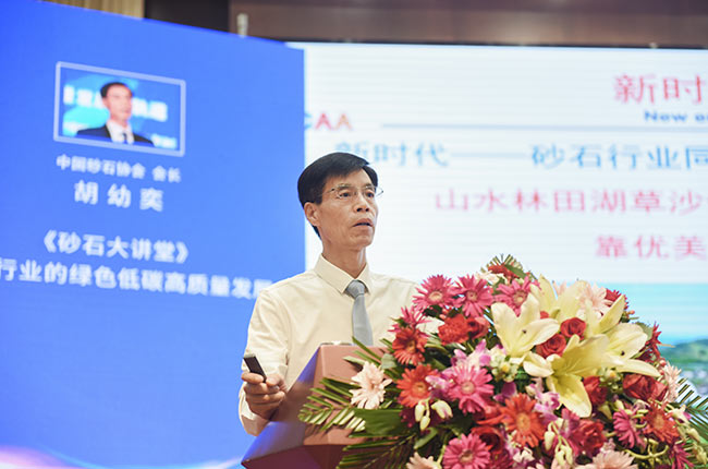 隨后,中砂石協(xié)會(huì)會(huì)長胡幼奕從當(dāng)前家環(huán)保形勢(shì)、各級(jí)發(fā)布砂石文件、砂石骨料市場(chǎng)需求及砂石產(chǎn)業(yè)發(fā)展模式等角度出發(fā),作“砂石行業(yè)的綠色低碳高質(zhì)量發(fā)展”的課程講解。