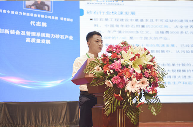 中譽(yù)鼎力銷售副總監(jiān)代志鵬以“創(chuàng)新裝備及管理系統(tǒng)助力砂石產(chǎn)業(yè)高質(zhì)量發(fā)展”為主題,就行業(yè)發(fā)展背景、公司創(chuàng)新設(shè)備、轉(zhuǎn)型升級(jí)定位和智能管理平臺(tái)等內(nèi)容展開精彩演講,與大家進(jìn)行業(yè)務(wù)分享和交流。