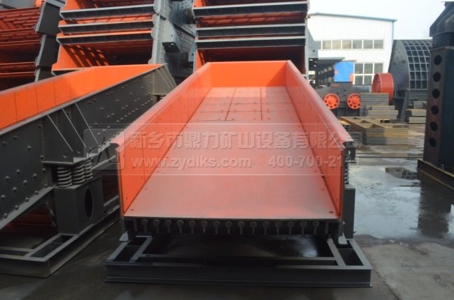 新鄉(xiāng)鼎力在配置石料生產(chǎn)線時(shí)使用的是ZG系列振動(dòng)給料機(jī),它作為連續(xù)、均勻給料的輔助設(shè)備。激振力的大小可以通過調(diào)整偏心塊的相對(duì)角度來改變,我們的給料機(jī)在設(shè)計(jì)時(shí)改變了以往平面的設(shè)計(jì),整體機(jī)身有著11度的傾斜角度,利用這個(gè)巧勁給料更省力,下雨天也不容易堵塞。