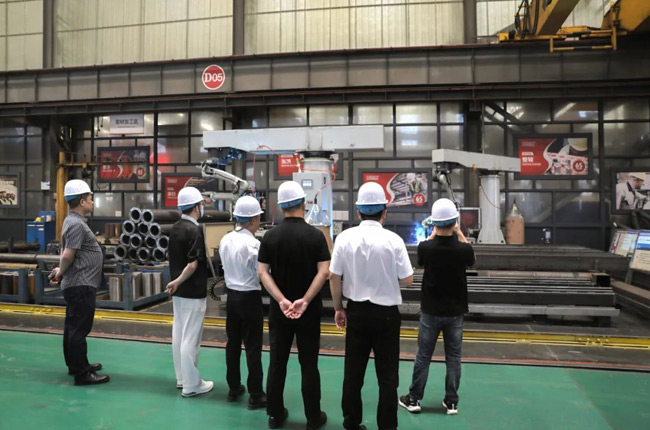 在中譽(yù)鼎力大型一體化智能車(chē)間,王順?lè)、杜凡新圍繞著公司的產(chǎn)品制造工藝流程、生產(chǎn)、加工細(xì)節(jié)等情況進(jìn)行了介紹。