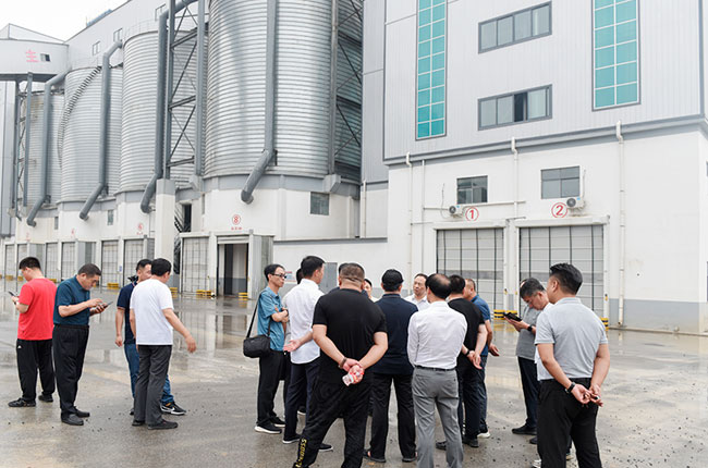 考察遠(yuǎn)大新材項(xiàng)目生產(chǎn)線及成品料倉(cāng)