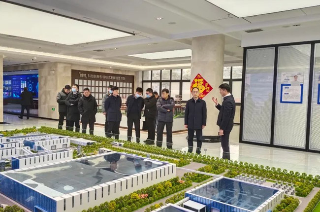 參觀公司“十二位一體”綠色建材產(chǎn)業(yè)園項(xiàng)目沙盤(pán)