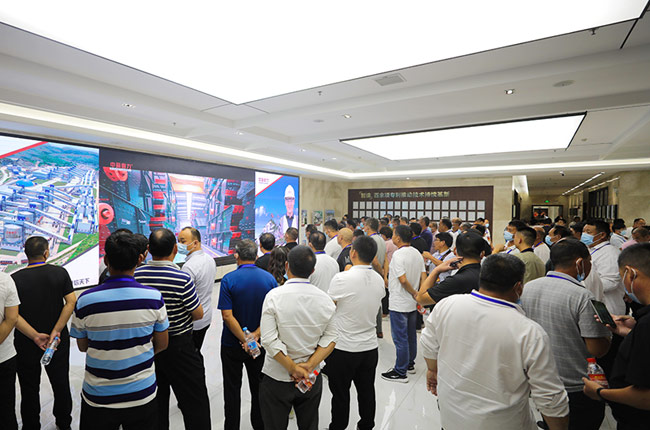 在智能裝備公司綜合辦公樓,考察團(tuán)先后參觀了中譽(yù)鼎力企業(yè)文化墻和多位一體循環(huán)建材產(chǎn)業(yè)園項(xiàng)目沙盤,并觀看了公司相關(guān)宣傳片,對(duì)中譽(yù)鼎力主營(yíng)業(yè)務(wù)及近年來(lái)發(fā)展情況有了進(jìn)一步了解。