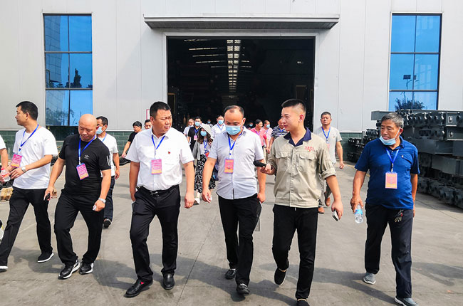 當(dāng)天上午,考察團(tuán)一行蒞臨中譽(yù)鼎力參觀調(diào)研。河南中譽(yù)鼎力智能裝備有限公司行政副總經(jīng)理崔玉清、企管部長(zhǎng)吳澤朋程陪同,并介紹公司各項(xiàng)情況。