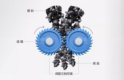 兩個齒輥的間隙設(shè)有三擋可調(diào),采用偏心剛性調(diào)整方法,使出料粒度保持穩(wěn)定;