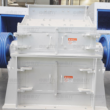 兩個(gè)進(jìn)料口可以使上方進(jìn)來的物料同時(shí)分布在兩個(gè)轉(zhuǎn)子的合理破碎位置。