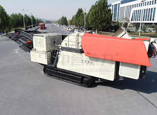 履帶式移動(dòng)破碎站的破碎、篩分、液壓、發(fā)動(dòng)機(jī)等模塊均安裝在移動(dòng)底盤上,可以在普通公路和較復(fù)雜地區(qū)靈活移動(dòng)