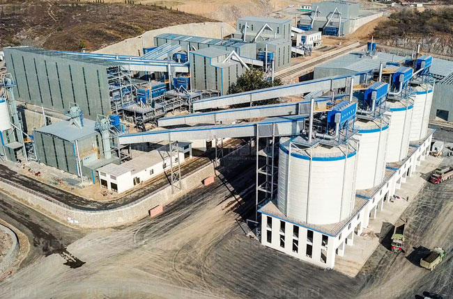 1個直徑32米的土石粉儲存庫,存儲量6000噸,儲存的土石粉是水洗系統(tǒng)原料的來源;