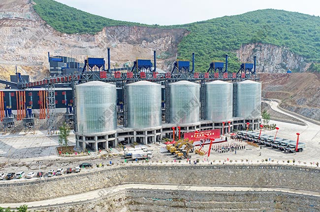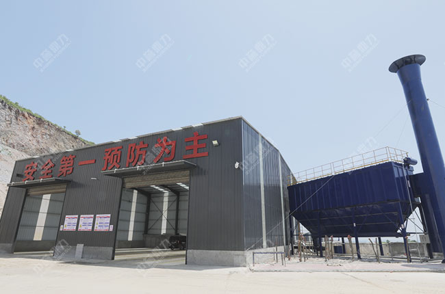 b.不同規(guī)格成品料通過密閉輸送帶進(jìn)入相應(yīng)規(guī)格的封閉成品料鋼板儲(chǔ)料倉(cāng),避免石料露天堆放造成粉塵污染。