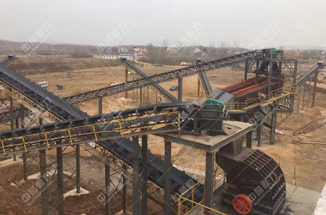 【工藝流程】:原料經(jīng)料倉由倉外給料機送到錘式破碎機初步破碎,破碎后的物料被輸送到一組并篩進行篩分,成品料直接送到成品料堆,不滿足成品料粒度要求的,被返回整形破碎機進行再次加工破碎。
