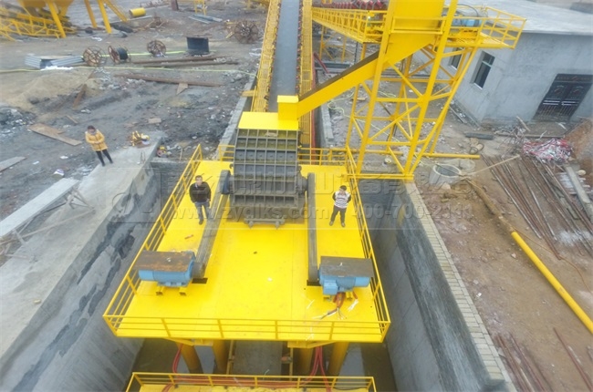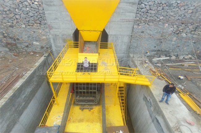 一、大塊石料經(jīng)ZGC2038振動給料機(jī)均勻的送到PCZ1615重型錘式反擊破碎機(jī)進(jìn)行粗碎
