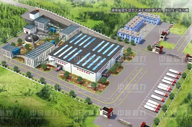 該項(xiàng)目占地約70畝,由合達(dá)建材石料有限公司投資,總投資約5000萬(wàn)元,項(xiàng)目位于湖南省邵陽(yáng)市邵東縣,由中譽(yù)鼎力承建生產(chǎn)線、提供礦山設(shè)備及智能系統(tǒng)。主要設(shè)備配置有DLZGC2050振動(dòng)給料機(jī)、DLPCZ1620重型錘式反擊破碎機(jī)、DLPC1220整形式破碎機(jī)、DLZSJ1213雙轉(zhuǎn)子制砂機(jī)、DL3YKQ2460振動(dòng)篩等,設(shè)計(jì)產(chǎn)能為時(shí)產(chǎn)1000噸骨料、200噸機(jī)制砂(年產(chǎn)300萬(wàn)噸砂石骨料),出5種成品料,包括0-5mm、5-10mm、10-20mm、20-31.5mm和砂