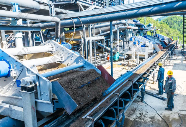 · 洗砂廢水:收集池→泥漿濃縮罐(添加絮凝劑)→板框壓濾機→清水回用(90%回收率)