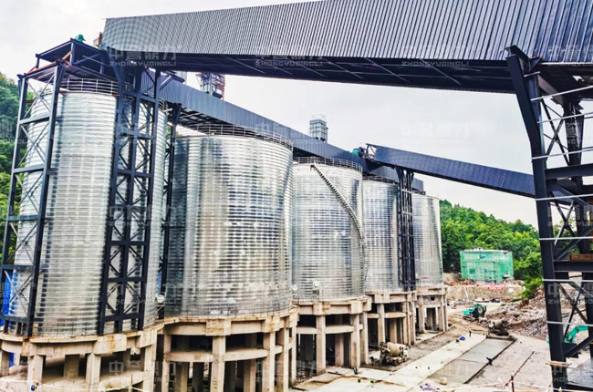 2、建設封閉鋼板筒倉5座,避免石料露天堆放造成粉塵污染;筒倉配備刷卡自動裝車系統(tǒng),頂部安裝除塵器,對裝車過程實時收塵,防止粉塵溢出;