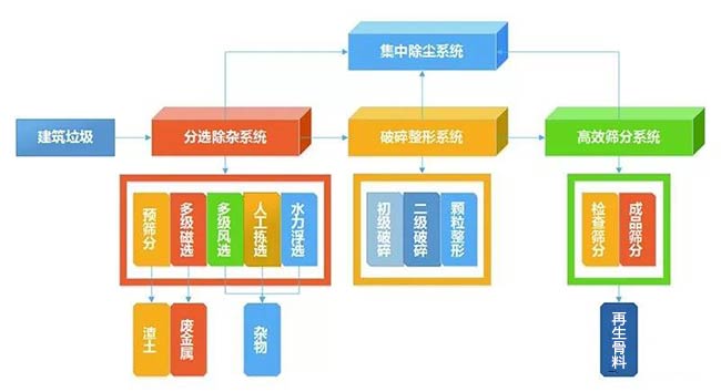 根據(jù)裝修垃圾、拆遷廢料、工程渣土和建筑泥漿等建筑垃圾分類(lèi)進(jìn)行相對(duì)應(yīng)的分揀處理;