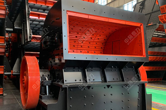 粗碎段,大塊的高嶺土原料由振動(dòng)給料機(jī)送入錘式破碎機(jī)進(jìn)料口進(jìn)行破碎,破碎后的物料從下方的篦條排除,再經(jīng)過振動(dòng)篩篩分,不符合的物料返回到錘式破碎機(jī)再次加工破碎。