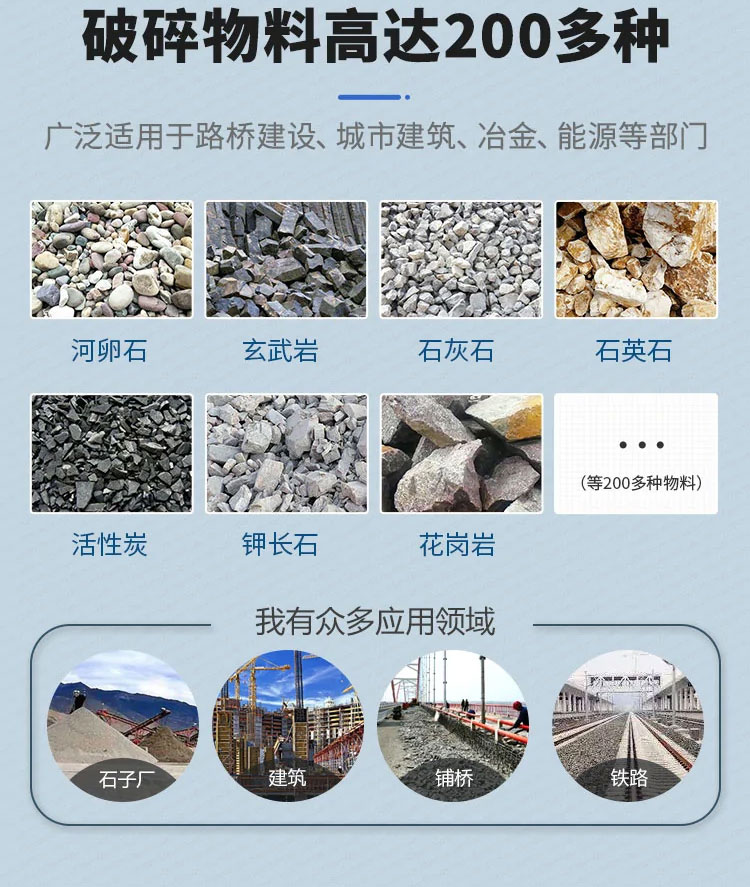 | 適應(yīng)物料: | 石灰石、青石等低硬度礦石以及花崗巖、河卵石等高硬度礦石 |