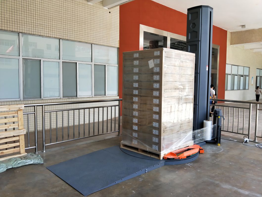 小黃蜂X100a全自動(dòng)智能纏繞機(jī),客戶自行上側(cè)護(hù)角及頂護(hù)角,紙箱包裝貨物?!?/div>